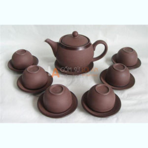 Ấm chén tử sa đen chỉ nâu đai hoa