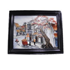 Tranh sứ Phố cổ Hà Nội xích lô