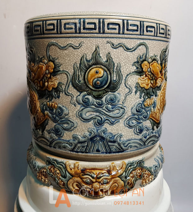 | Loại sản phẩm | Bát hương rạn đắp rồng men rạn đường kính 30cm (Có chân) |