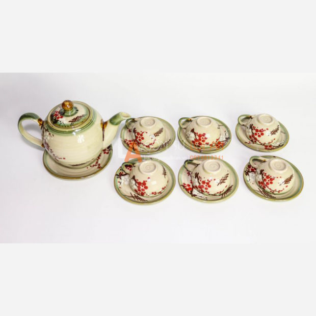 Bộ sản phẩm bao gồm có: 1 ấm, 7 đĩa , 6 chén. Mọi đơn vị sản phẩm đều được in logo theo yêu cầu của quý khách.