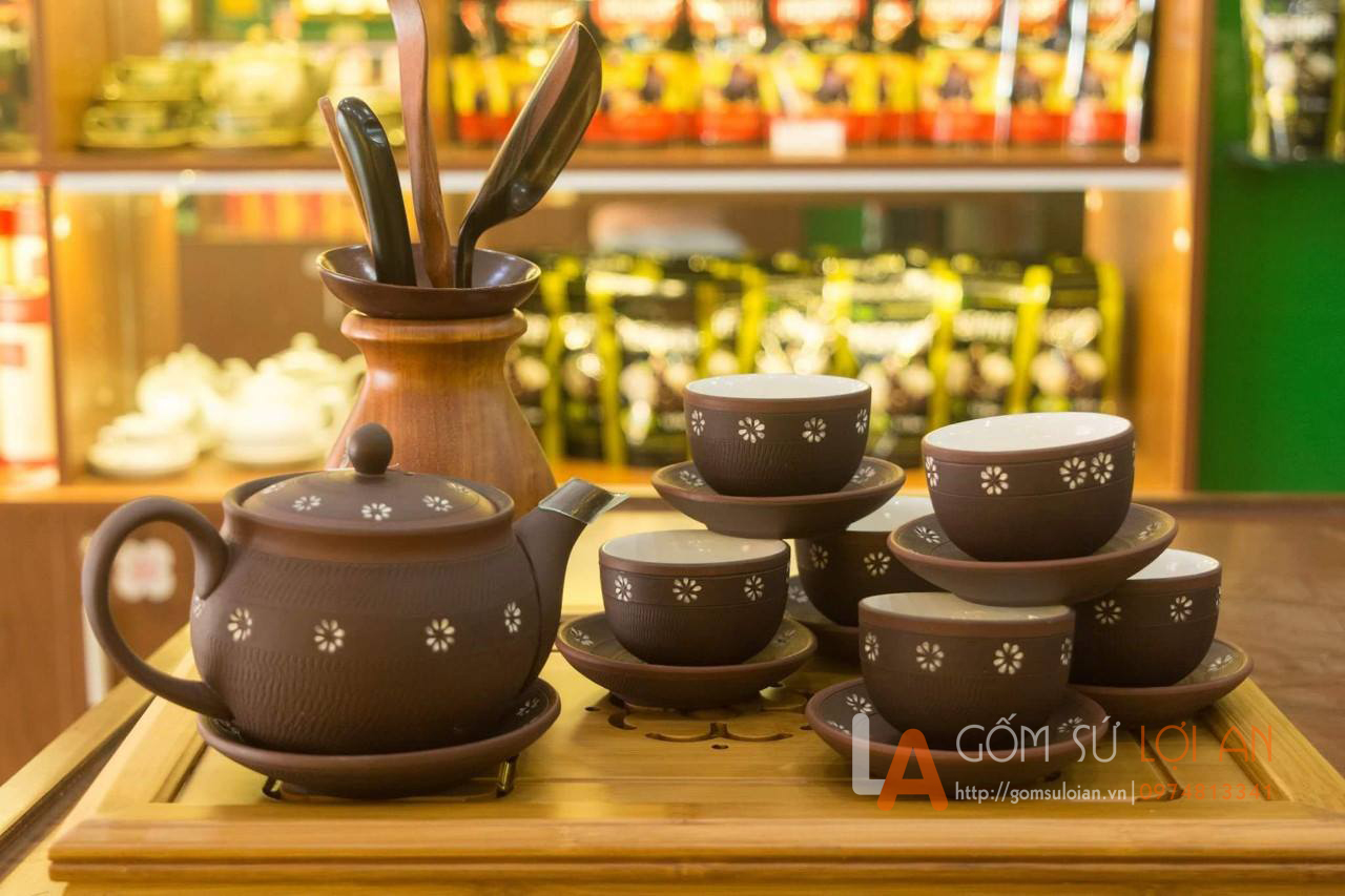 Bộ sản phẩm bao gồm có: 1 ấm, 7 đĩa , 6 chén, 1 khay tre. Mọi đơn vị sản phẩm đều được in logo theo yêu cầu của quý khách.