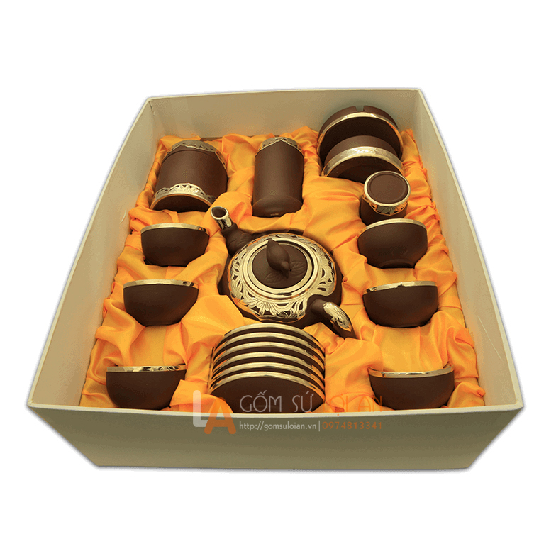 | Loại sản phẩm | Ấm chén tử sa quả đào bọc đồng |
