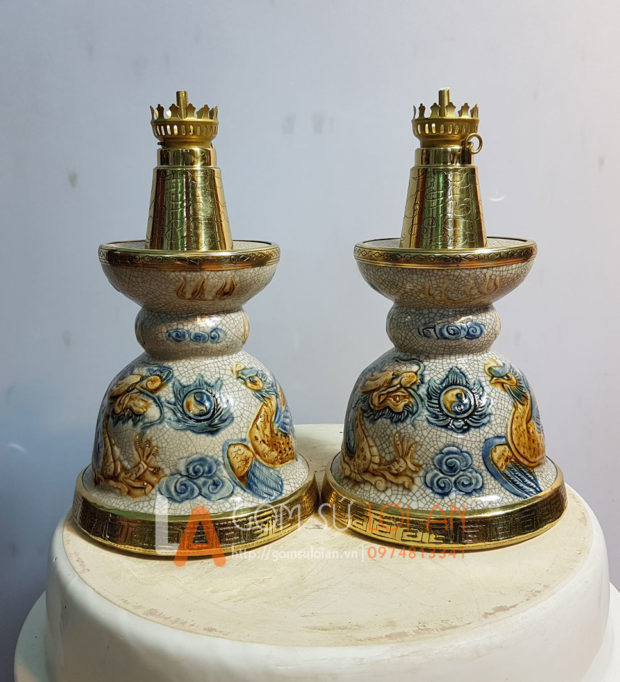 Loại sản phẩm | Đèn nến thờ rạn bọc đồng khắc sen cao 24cm |