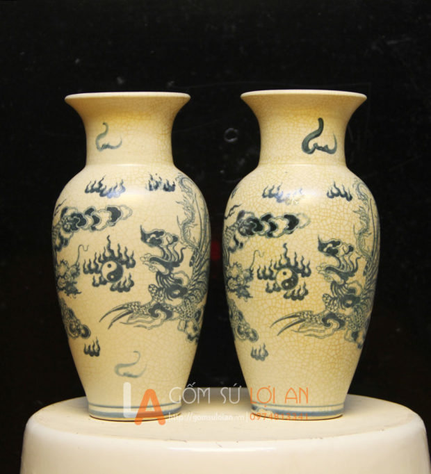 | Loại sản phẩm | Lọ hoa men rạn trơn vẽ rồng phượng h 25 |