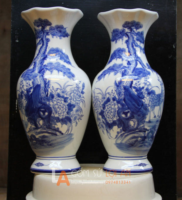 | Loại sản phẩm | Lọ hoa miệng bát giác vẽ tùng hươu H25 |