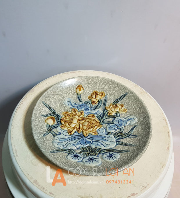 | Loại sản phẩm | Mâm bồng đĩa quả rạn đắp sen đường kính 20 cm + chân |
