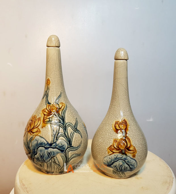 | Loại sản phẩm | Nậm rượu chóp số 3 men rạn đắp sen cao 17cm |