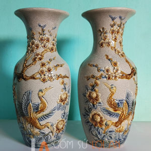 Đôi Lọ thờ rạn đắp đôi hặc cao 40 cm