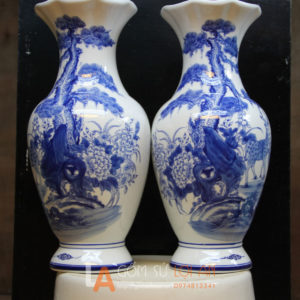 Đôi lọ hoa miệng bát giác vẽ tùng hươu H29